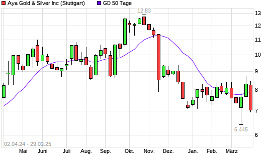 Mit dem Rücksetzer auf 6,93 EUR hat die Aya Gold & Silver-Aktie am 28.03.2025 die 50-Tage-Linie nach unten gekreuzt.