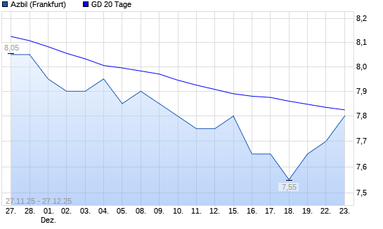 Mit dem Anstieg auf 7,80 EUR hat die Azbil Yamatake-Aktie am 26.12.2025 die 20-Tage-Linie nach oben gekreuzt.