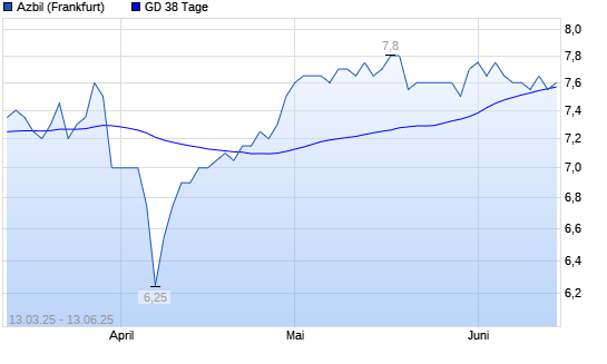 Mit dem Rücksetzer auf 7,55 EUR hat die Azbil Yamatake-Aktie am 12.06.2025 die 38-Tage-Linie nach unten gekreuzt.