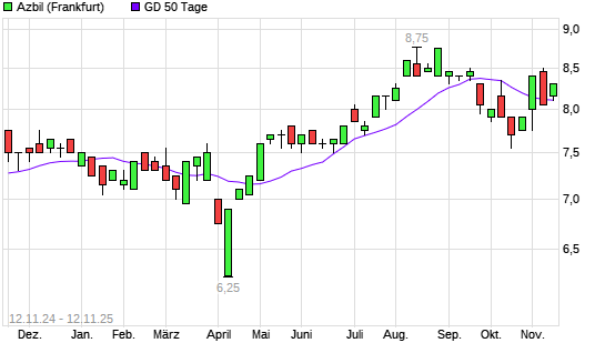 Mit dem Rücksetzer auf 8,10 EUR hat die Azbil Yamatake-Aktie am 11.11.2025 die 50-Tage-Linie nach unten gekreuzt.
