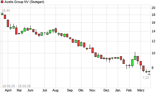 Mit dem Rücksetzer auf 7,31 EUR hat die Azelis Group N.V-Aktie (ISIN BE0974400328) am 17.03.2026 ein neues All-Time-Low erreicht und damit den Kurs vom 12.03.2026 eingestellt.