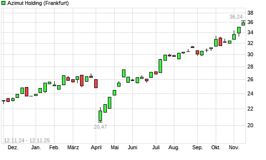 Mit dem Anstieg auf 36,24 EUR hat die Azimut Holding-Aktie (ISIN IT0003261697) am 11.11.2025 ein neues 10-Jahres-Hoch erreicht und damit den Kurs vom 10.11.2025 eingestellt.