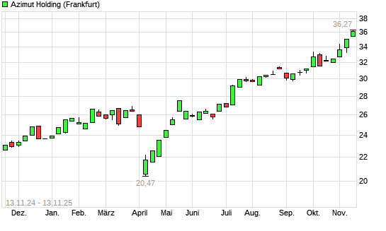 Mit dem Anstieg auf 36,27 EUR hat die Azimut Holding-Aktie (ISIN IT0003261697) am 12.11.2025 ein neues 10-Jahres-Hoch erreicht und damit den Kurs vom 11.11.2025 eingestellt.