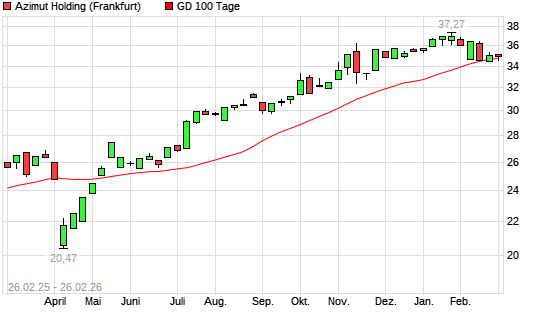 Mit dem Rücksetzer auf 34,57 EUR hat die Azimut Holding-Aktie am 25.02.2026 die 100-Tage-Linie nach unten gekreuzt.