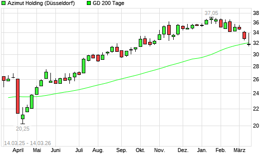 Mit dem Rücksetzer auf 32,30 EUR hat die Azimut Holding-Aktie am 13.03.2026 die 200-Tage-Linie nach unten gekreuzt.