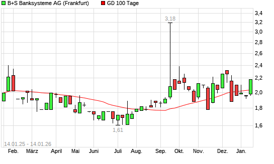 Mit dem Anstieg auf 2,06 EUR hat die B+S Banksysteme-Aktie am 13.01.2026 die 100-Tage-Linie nach oben gekreuzt.