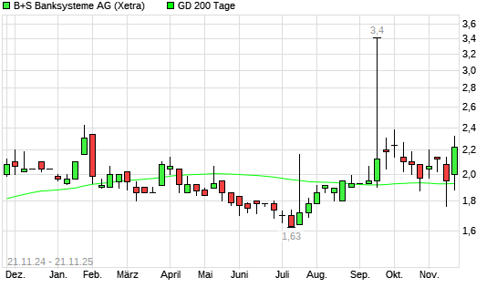 Mit dem Anstieg auf 2,22 EUR hat die B+S Banksysteme-Aktie am 20.11.2025 die 200-Tage-Linie nach oben gekreuzt.