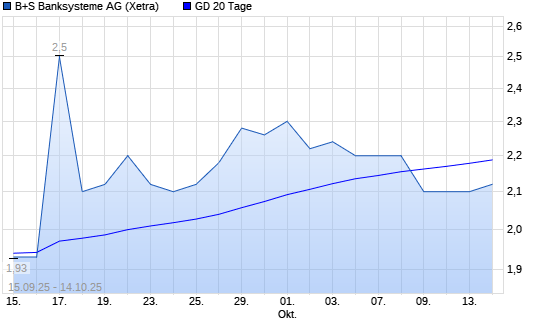 Mit dem Rücksetzer auf 2,08 EUR hat die B+S Banksysteme-Aktie am 13.10.2025 die 20-Tage-Linie nach unten gekreuzt.