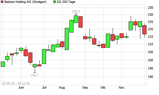Mit dem Rücksetzer auf 212,60 EUR hat die Bâloise-Holding-Aktie am 18.03.2026 die 200-Tage-Linie nach unten gekreuzt.