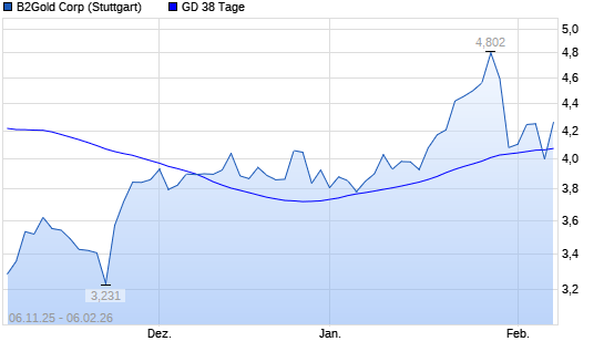 Mit dem Rücksetzer auf 4,07 EUR hat die B2Gold-Aktie am 05.02.2026 die 38-Tage-Linie nach unten gekreuzt.
