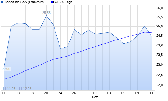 Mit dem Anstieg auf 25,02 EUR hat die BANCA IFIS S.P.A.-Aktie am 10.12.2025 die 20-Tage-Linie nach oben gekreuzt.