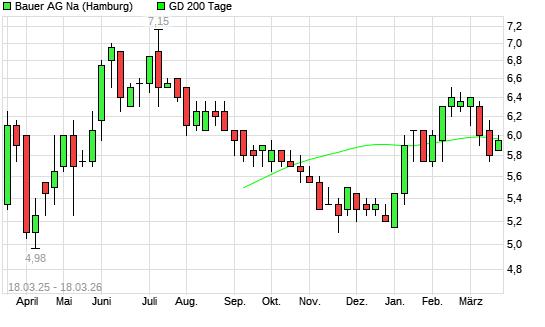 Mit dem Anstieg auf 5,95 EUR hat die BAUER AG O.N.-Aktie am 17.03.2026 die 200-Tage-Linie nach oben gekreuzt.