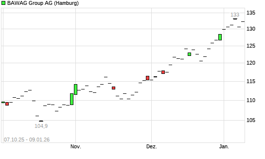 Mit dem Anstieg auf 131,30 EUR hat die BAWAG Group-Aktie (ISIN AT0000BAWAG2) am 08.01.2026 ein neues All-Time-High erreicht und damit den Kurs vom 06.01.2026 eingestellt.