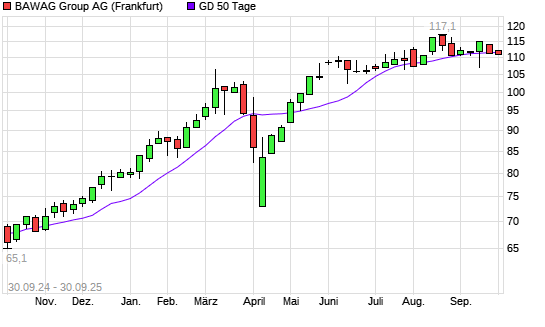 Mit dem Anstieg auf 111,70 EUR hat die BAWAG Group-Aktie am 29.09.2025 die 50-Tage-Linie nach oben gekreuzt.