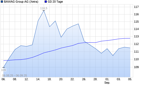 Mit dem Rücksetzer auf 112,40 EUR hat die BAWAG Group-Aktie am 05.09.2025 die 20-Tage-Linie nach unten gekreuzt.