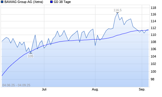 Mit dem Rücksetzer auf 111,40 EUR hat die BAWAG Group-Aktie am 03.09.2025 die 38-Tage-Linie nach unten gekreuzt.