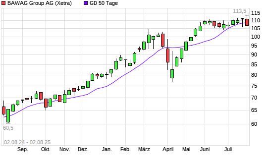 Mit dem Rücksetzer auf 107,30 EUR hat die BAWAG Group-Aktie am 01.08.2025 die 50-Tage-Linie nach unten gekreuzt.