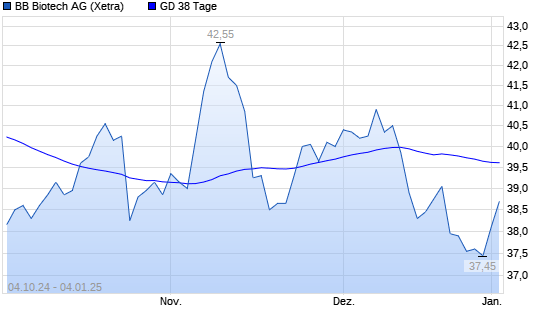 Mit dem Anstieg auf 39,15 EUR hat die BB Biotech-Aktie am 03.01.2025 die 38-Tage-Linie nach oben gekreuzt.