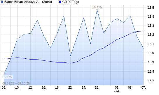 Mit dem Rücksetzer auf 16,21 EUR hat die BBVA-Aktie am 07.10.2025 die 20-Tage-Linie nach unten gekreuzt.
