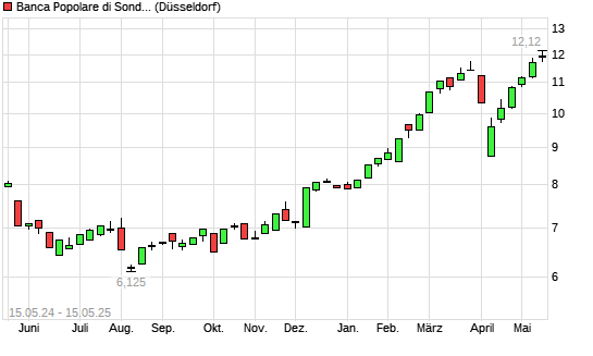 Mit dem Anstieg auf 12,03 EUR hat die BCA Pop di Sondrio-Aktie (ISIN IT0000784196) am 14.05.2025 ein neues All-Time-High erreicht und damit den Kurs vom 13.05.2025 eingestellt.