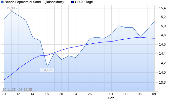 Mit dem Rücksetzer auf 14,74 EUR hat die BCA Pop di Sondrio-Aktie am 08.12.2025 die 20-Tage-Linie nach unten gekreuzt.
