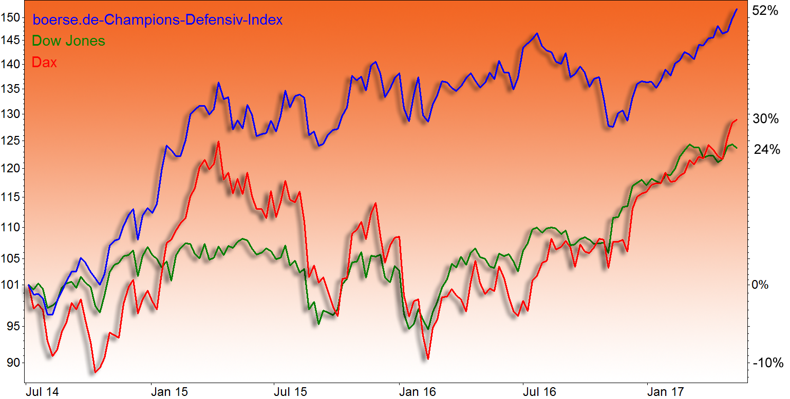 (boerse.de) –Der boerse.de-Champions-Defensiv-Index (BCDI) erreichte am vergangenen Freitag wieder ein neues Allzeithoch bei 151,85 Punkten. Damit markierte der BCDI bereits in der dritten Woche infolge einen neuen Rekord. Zum Vergleich: