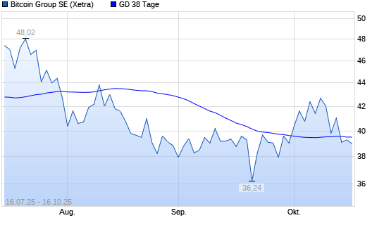 Mit dem Anstieg auf 39,80 EUR hat die Bitcoin Group-Aktie am 15.10.2025 die 38-Tage-Linie nach oben gekreuzt.Die Bitcoin Group-Aktie befindet sich seit dem 10.10.2025 im langfristigen Abwärtstrend ...weiterlesen