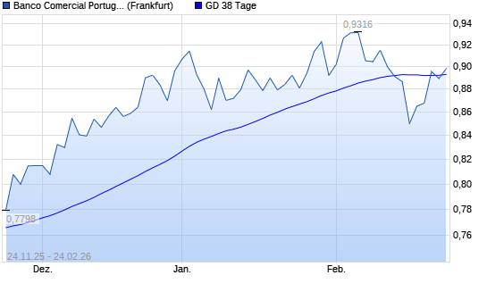 Mit dem Anstieg auf 0,90 EUR hat die BCO COM. PORT.NOM. O.N.-Aktie am 23.02.2026 die 38-Tage-Linie nach oben gekreuzt.Der Abstand zur 200-Tage-Linie beträgt aktuell +17,02%. ...weiterlesen