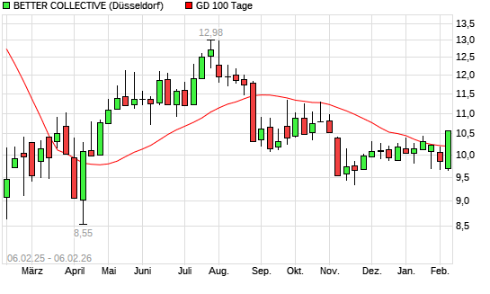 Mit dem Anstieg auf 10,48 EUR hat die BETTER COLLECTIVE-Aktie am 05.02.2026 die 100-Tage-Linie nach oben gekreuzt.