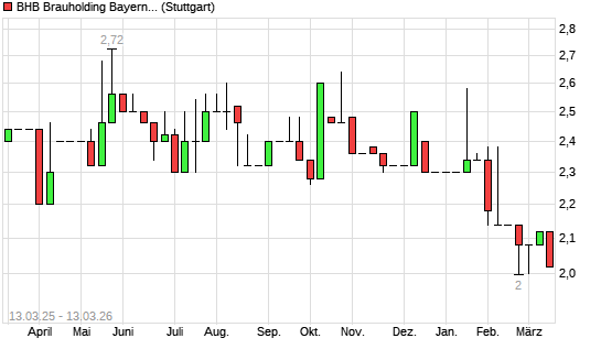 Mit dem Rücksetzer auf 2,02 EUR hat die BHB BRAUHLD.BAY.MIT.AG-Aktie (ISIN DE000A1CRQD6) am 12.03.2026 ein neues All-Time-Low erreicht und damit den Kurs vom 17.02.2026 eingestellt.