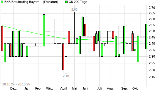Mit dem Rücksetzer auf 2,36 EUR hat die BHB BRAUHLD.BAY.MIT.AG-Aktie am 27.10.2025 die 200-Tage-Linie nach unten gekreuzt.