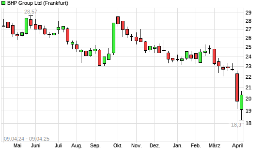 Mit dem Rücksetzer auf 18,30 EUR hat die BHP Group-Aktie (ISIN AU000000BHP4) am 08.04.2025 ein neues 3-Jahres-Tief erreicht und damit den Kurs vom 07.04.2025 eingestellt.