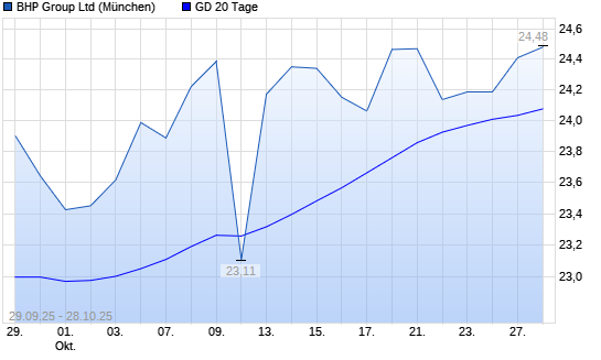 Mit dem Anstieg auf 24,15 EUR hat die BHP Group-Aktie am 27.10.2025 die 20-Tage-Linie nach oben gekreuzt.