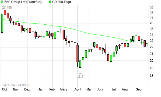 Mit dem Anstieg auf 22,57 EUR hat die BHP Group-Aktie am 23.09.2025 die 200-Tage-Linie nach oben gekreuzt.