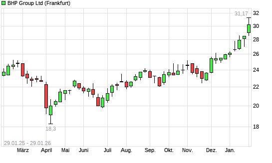 Mit dem Anstieg auf 29,69 EUR hat die BHP Group-Aktie (ISIN AU000000BHP4) am 28.01.2026 ein neues 12-Monats-Hoch erreicht und damit den Kurs vom 27.01.2026 eingestellt.Die BHP ...weiterlesen