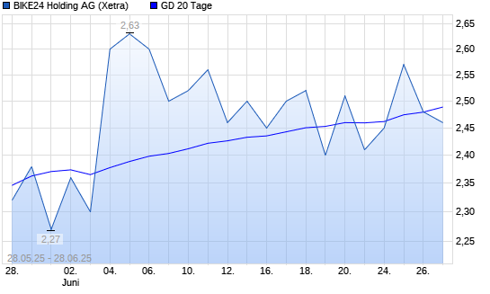 Mit dem Anstieg auf 2,47 EUR hat die BIKE24 Holding AG-Aktie am 27.06.2025 die 20-Tage-Linie nach oben gekreuzt.
