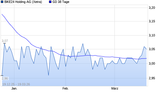 Mit dem Rücksetzer auf 2,97 EUR hat die BIKE24 Holding AG-Aktie am 18.03.2026 die 38-Tage-Linie nach unten gekreuzt.