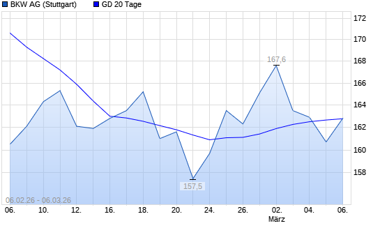 Mit dem Rücksetzer auf 158,40 EUR hat die BKW AG Namenaktie-Aktie am 05.03.2026 die 20-Tage-Linie nach unten gekreuzt.