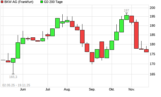 Mit dem Rücksetzer auf 176,10 EUR hat die BKW AG Namenaktie-Aktie am 18.11.2025 die 200-Tage-Linie nach unten gekreuzt.