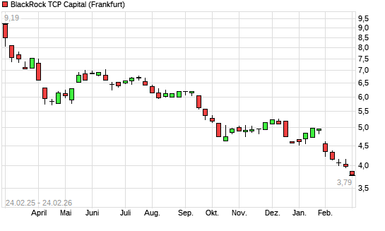 Mit dem Rücksetzer auf 3,83 EUR hat die BLACKROCK TCP CAP.-Aktie (ISIN US09259E1082) am 23.02.2026 ein neues All-Time-Low erreicht und damit den Kurs vom 19.03.2020 eingestellt.