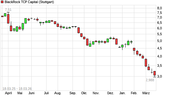 Mit dem Rücksetzer auf 3,08 EUR hat die BLACKROCK TCP CAP.-Aktie (ISIN US09259E1082) am 17.03.2026 ein neues All-Time-Low erreicht und damit den Kurs vom 13.03.2026 eingestellt.