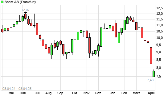 Mit dem Rücksetzer auf 7,66 EUR hat die BOOZT AB-Aktie (ISIN SE0009888738) am 07.04.2025 ein neues 12-Monats-Tief erreicht und damit den Kurs vom 04.04.2025 eingestellt.