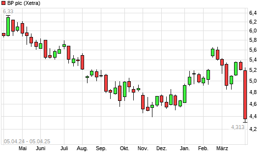 Mit dem Rücksetzer auf 4,37 EUR hat die BP-Aktie (ISIN GB0007980591) am 04.04.2025 ein neues 12-Monats-Tief erreicht und damit den Kurs vom 12.11.2024 eingestellt.