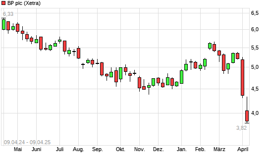 Mit dem Rücksetzer auf 4,00 EUR hat die BP-Aktie (ISIN GB0007980591) am 08.04.2025 ein neues 3-Jahres-Tief erreicht und damit den Kurs vom 07.04.2025 eingestellt.