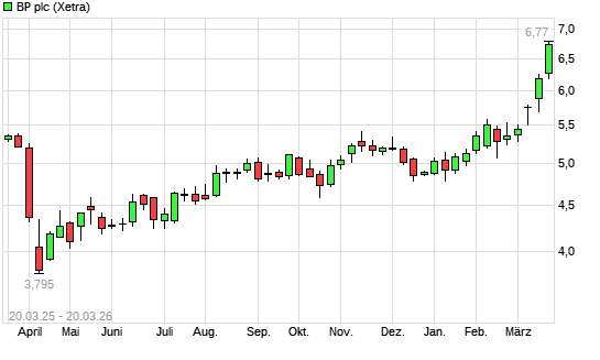 Mit dem Anstieg auf 6,65 EUR hat die BP-Aktie (ISIN GB0007980591) am 19.03.2026 ein neues 5-Jahres-Hoch erreicht und damit den Kurs vom 18.03.2026 eingestellt.