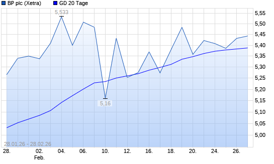 Mit dem Anstieg auf 5,48 EUR hat die BP-Aktie am 27.02.2026 die 20-Tage-Linie nach oben gekreuzt.