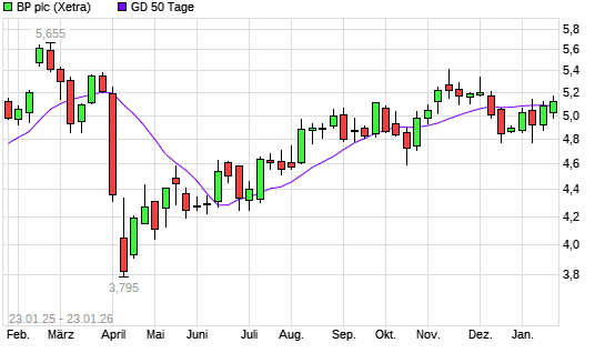Mit dem Rücksetzer auf 5,03 EUR hat die BP-Aktie am 22.01.2026 die 50-Tage-Linie nach unten gekreuzt.