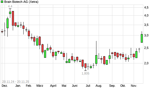 Mit dem Anstieg auf 3,01 EUR hat die BRAIN Biotech AG-Aktie (ISIN DE0005203947) am 19.11.2025 ein neues 6-Monats-Hoch erreicht und damit den Kurs vom 17.11.2025 eingestellt.