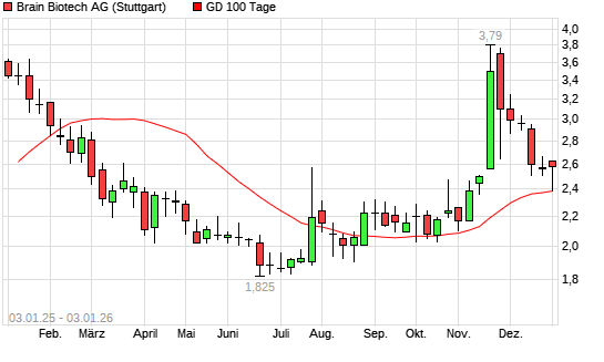 Mit dem Anstieg auf 2,61 EUR hat die BRAIN Biotech AG-Aktie am 02.01.2026 die 100-Tage-Linie nach oben gekreuzt.
