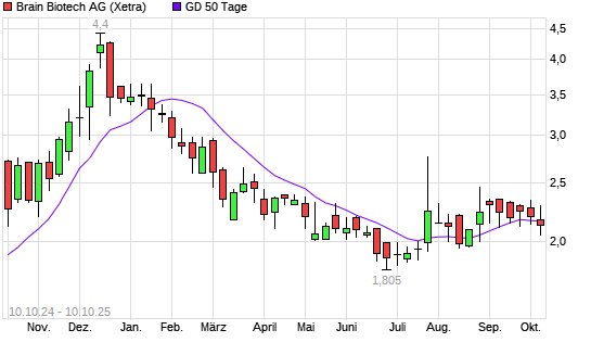 Mit dem Anstieg auf 2,17 EUR hat die BRAIN Biotech AG-Aktie am 09.10.2025 die 50-Tage-Linie nach oben gekreuzt.